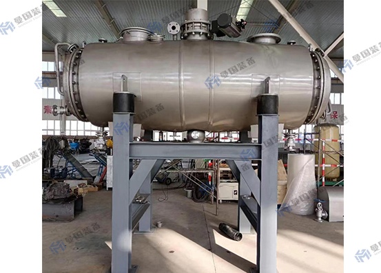 振動干燥機由干燥機本體、過濾器、真空系統(tǒng),三部分組成。本體設(shè)有夾套,用于通導(dǎo)熱油給內(nèi)腔加熱,兩側(cè)分別設(shè)有橡膠彈 簧支撐,激振單元設(shè)置在筒體側(cè)面,動力由振動電機驅(qū)動。