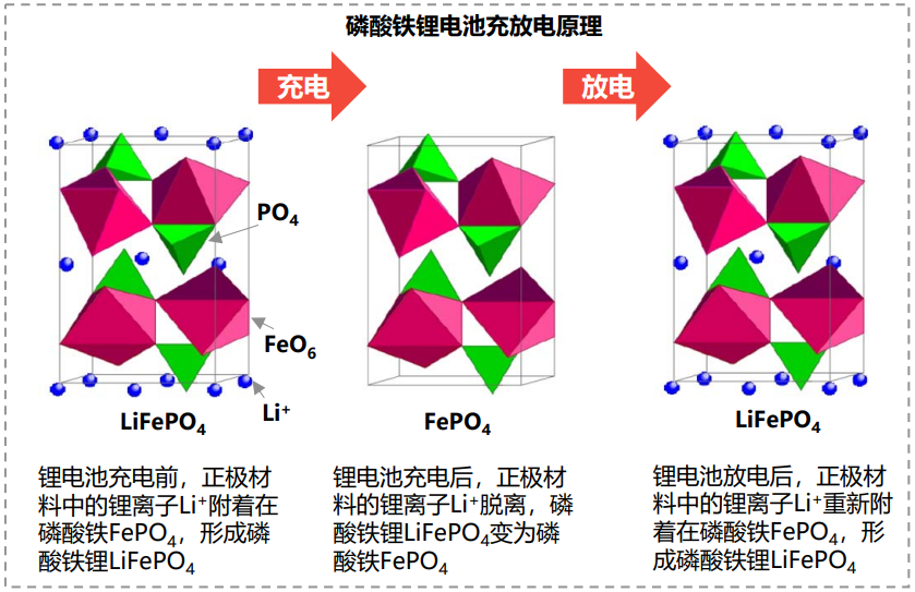 當(dāng)鋰電池放電時,Li+從負(fù)極材料中脫離,穿過電池隔膜和電解液后回到正極材料,F(xiàn)ePO4在Li+嵌入后變回LiFePO4 ,完成放電過程。03-29